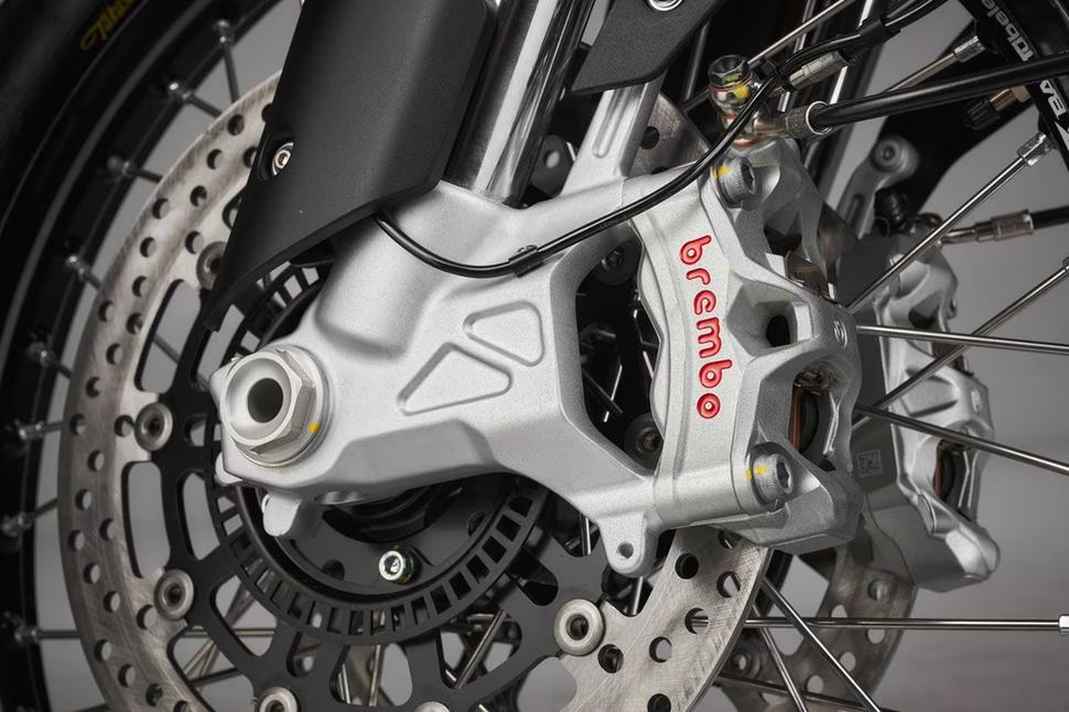Тормозные компоненты - конечно же радиальные четырёхпоршневые Brembo Stylema на двух 320-х дисках спереди и двухпоршневой Brembo на 265-м диске сзади. Функционал наклонной ABS обеспечивает модуль Continental MK 100.