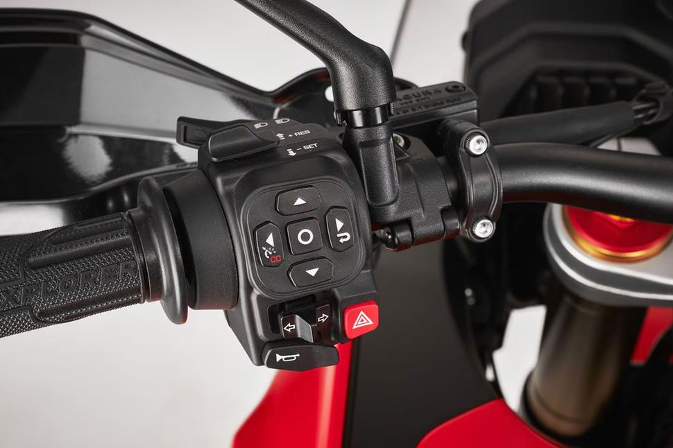 Комплект бортовой электроники MV Agusta Enduro Veloce 2024 составлен на базе шестиосевого инерциального блока и электронных дроссельных заслонок. В набор входят четыре режима езды: Городской, Туристический, Внедорожный и Пользовательский Универсальный. Имеется восемь ступеней трекшн-контроля: пять для асфальта, два для бездорожья и один для дождя, а также можно полностью отключить эту систему. Кроме того, владелец может выбрать в меню тип резины - асфальтовую или внедорожную, чтобы сообщить трекшн-контролю о характере протектора.