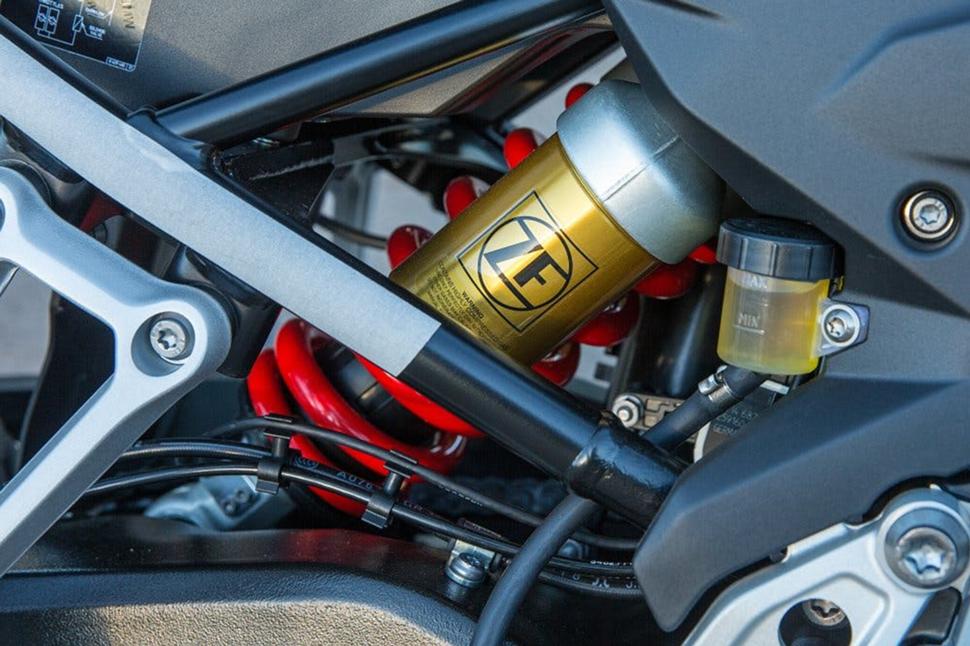 Задний амортизатор здесь имеет классическую конструкцию (на 850ке стоит амортизатор системы WAD с прогрессивным демпфированием). В базовом виде преднатяг амортизатора настраивается вручную с помощью гидравлической системы, как и сглаживание отбоя. Перейдя на Premium Package, вы получаете электронное динамическое управление подвеской Dynamic ESA, которое позволяет настраивать подвеску с помощью кнопок. Ход задней подвески составляет 175 мм, что примерно на 4 сантиметра меньше, чем на F850GS.