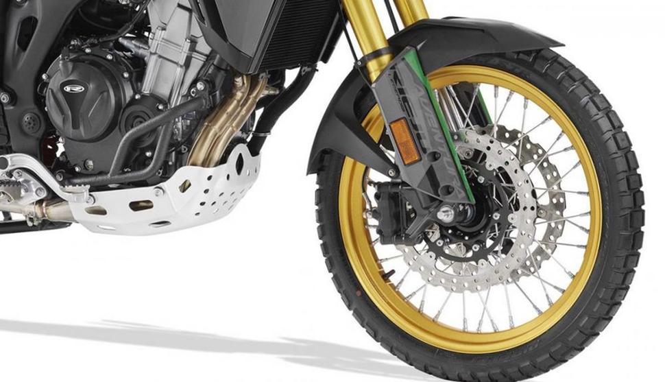 В первую очередь стоит отметить дизайн Aventura Legend. Внешность этого мотоцикла бесспорно была вдохновлена Honda Africa Twin: передний обтекатель и боковой профиль в целом весьма напоминают нынешнюю итерацию легендарного большого турэндуро. Но не давайте визуальному сходству сбить вас с толку: в остальном Aventura Legend - вполне самостоятельный мотоцикл.