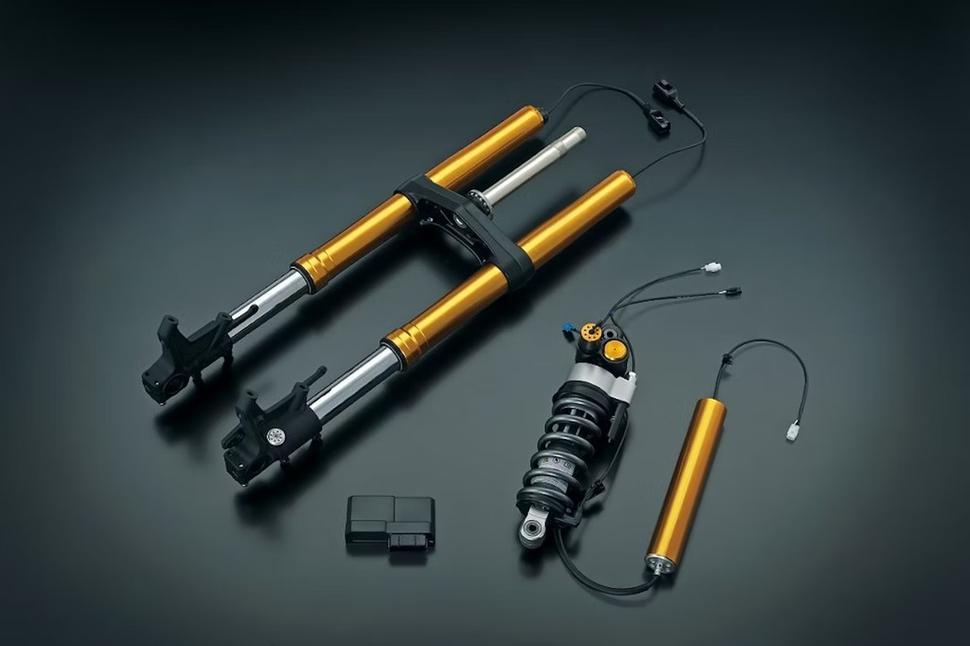Во-первых, подвески Suzuki GSX-S1000GX не только более длинноходные, чем на GT, они ещё и с электронным управлением. Эта система основана на Showa EERA и называется Suzuki Advanced Electronic Suspension. Она использует данные инерциального модуля и датчики положения подвесок для автоматического подсчёта оптимального сглаживания перевёрнутой вилки Showa SFF-CA и заднего амортизатора BFRC-lite.