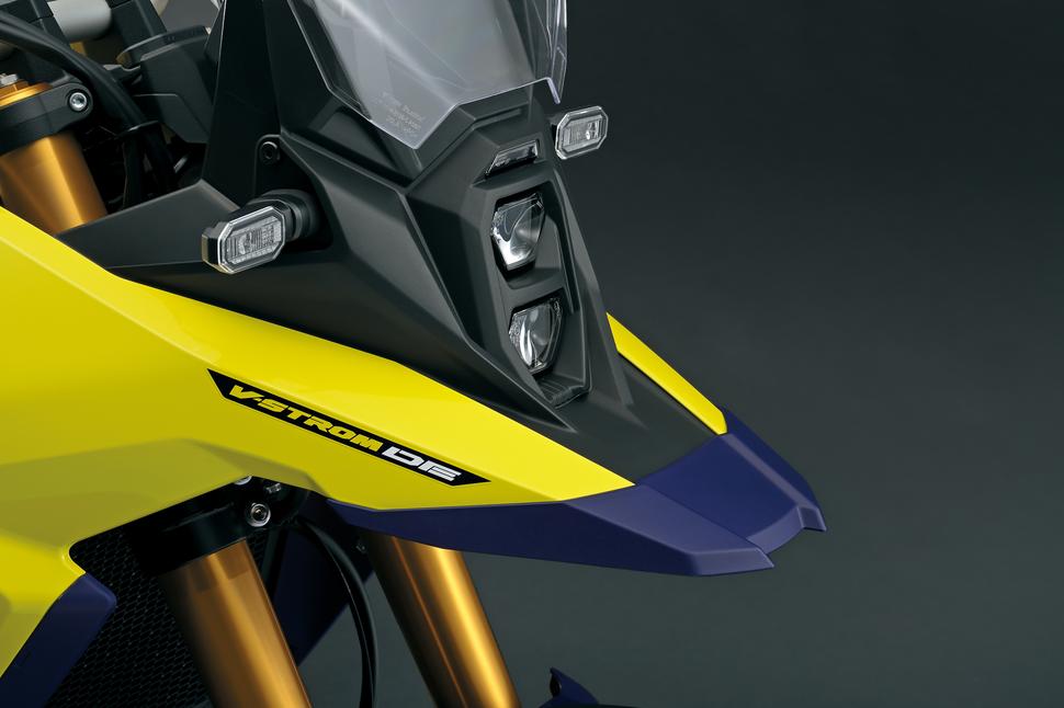 Нравится вам это или нет, но Suzuki V-Strom опять обзавёлся клювом, и расположен он ещё выше, чтобы подчеркнуть внедорожные возможности мотоцикла. Ветровое стекло регулируется с шагом 1,5см, правда, при помощи инструмента. Сзади на лёгком пластиковом багажнике имеются пассажирские ручки, за которые можно тянуть мотоцикл в затруднительной ситуации. Радиатор получил сетчатую защиту от грязи, а ещё 800DE оснащён пластиковой защитной пластиной снизу.