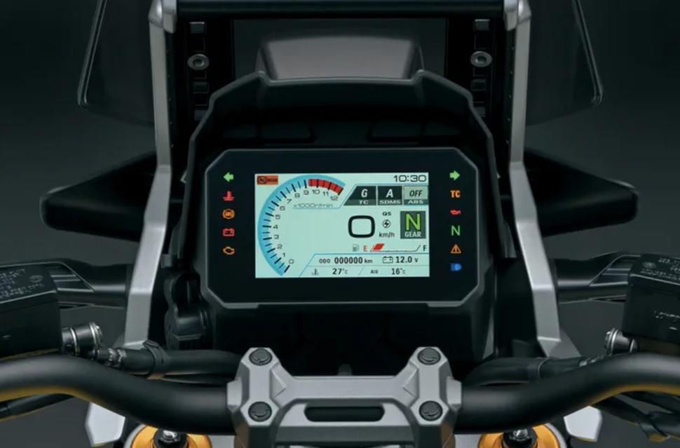 Для начала - изменения, которые на будущий год получат обе модели. Независимо от того, выберете ли вы V-Strom 1050 или 1050DE 2023 года, вы получите полноцветный TFT-дисплей, который выглядит более современным, чем прошлая версия. Через дисплей управляется прежний комплект электроники и бортовых ассистентов, включающий шестиосевой блок измерения инерции, чувствительную к наклону ABS с комбинированными тормозами и отслеживанием нагрузки и уклона, систему помощи на склоне, круиз-контроль и три режима мощности двигателя и трекшн-контроля. Новинкой 2023 года станет двунаправленный квикшифтер, который входит в стандартную комплектацию всё бОльшего числа моделей. Модуль ABS от Bosch обоих V-Strom был обновлён, он теперь легче и компактнее предыдущей версии.