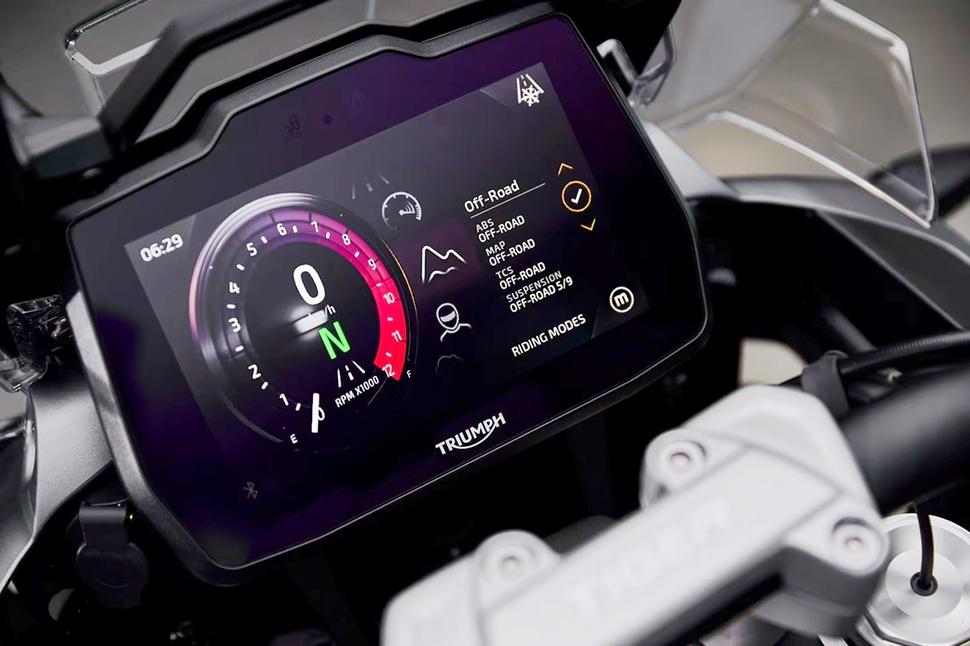 Пакет электронных ассистентов Triumph эффективен и весьма полезен. Система позволяет регулировать отклик на газ, ABS, трекшн-контроль и параметры сглаживания в каждом режиме, но есть и некоторые ограничения. Например, трекшн-контроль можно выставить в режимы Спортивный, Дорожный, Дождевой, Внедорожный или выключить его вовсе, но Внедорожный режим трекшн-контроля не выставляется в Дорожном режиме езды. Для бездорожья было бы приятно иметь более широкий диапазон настроек, но для типичного асфальтового райдера всё вполне удобно - отсутствие лишних настроек идёт только на пользу.