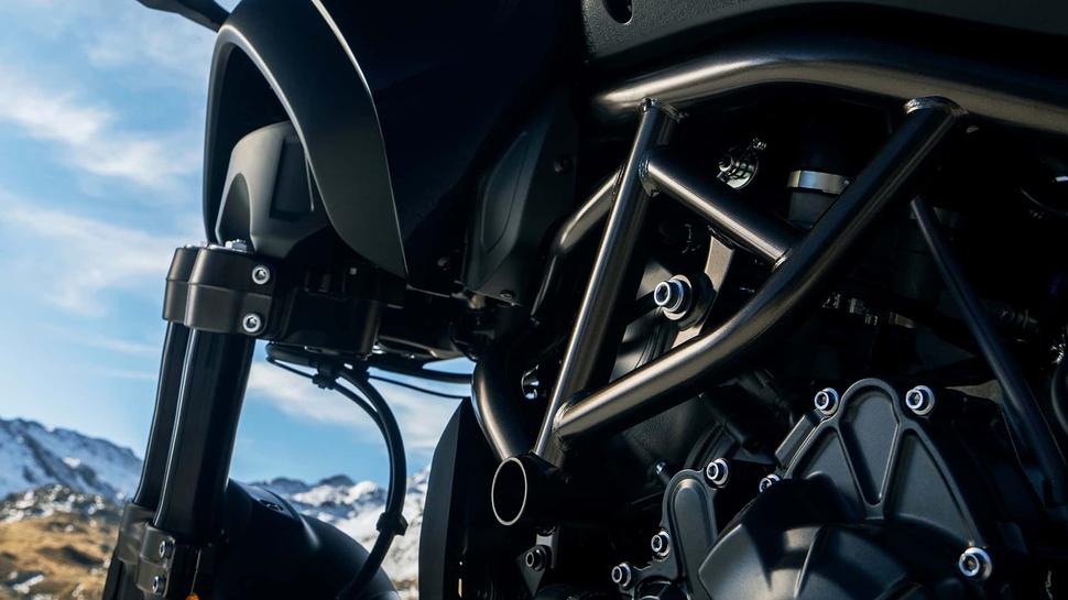 Новый Niken выглядит практически так же, как и старый, но отличия между ними разительны. Во-первых, Yamaha Niken 2023 года получила новый двигатель CP3 объёмом 890куб.см - на 42 кубика больше. Он теперь производит 113,3лс на 10000об/мин с коленвала и 90,7Нм на 7000об/мин. Ещё есть новая гибридная рама из стали и алюминия, а кроме того, Yamaha улучшила и доработала заднюю подвеску.