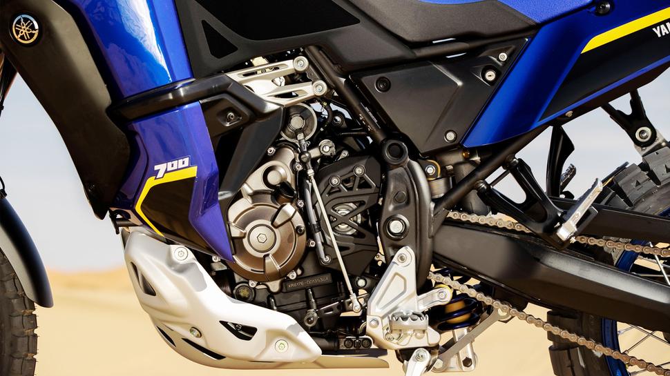 Двигатель новинки остался тем же 689-кубовым двухцилиндровым рядником жидкостного охлаждения CP2, что стоит на других представителях серии Tenere 700. World Raid получит такой же обновлённый аирбокс, что и обе прежние модели, а также новую решётку радиатора для более эффективного охлаждения и кроссовые вертикальные жабры на ней для защиты радиатора от мусора. Более мощная трёхкомпонентная алюминиевая защитная пластина защищает от грязи и ударов двигатель.