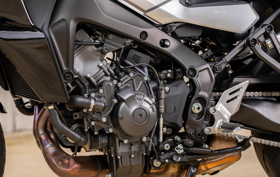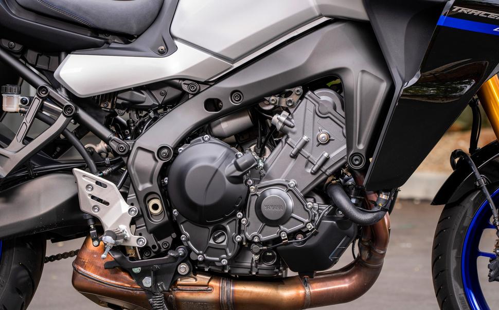 И вот в чём тут штука: Tracer 9 GT имеет достаточно мягкие и выдержанные манеры для города. Его ручка сцепления информативна, а двигатель более чем хорош. У него с избытком тяги, он отлично звучит, и он достаточно бодр и энергичен, несмотря на то, что в этой версии коленвал сделали тяжелее для большей тяговитости.
