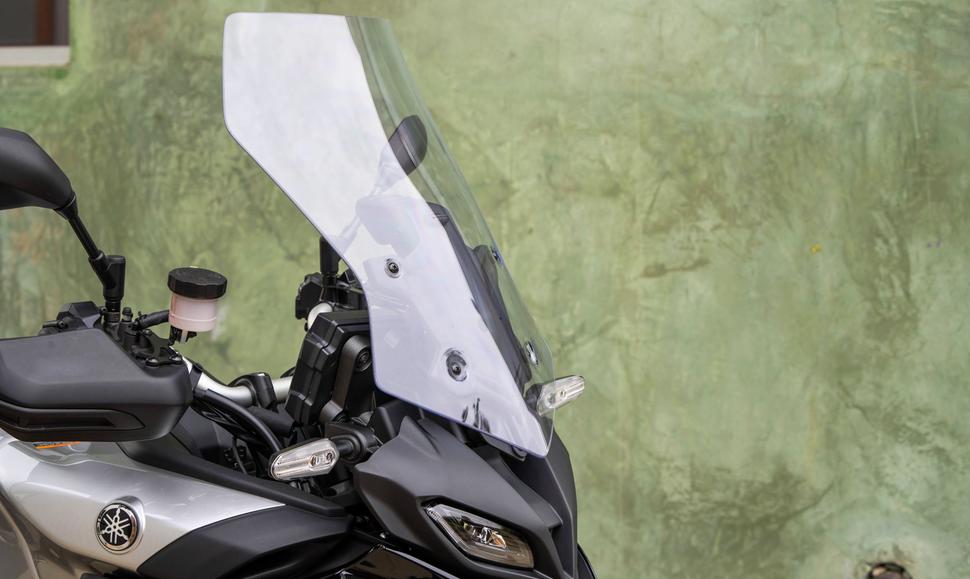 Кстати, об удобстве: ветровое стекло Tracer 9 GT регулируется в диапазоне 5 сантиметров, а седло высотой 80см может быть поднято до 82,5см - как на MT-09, причём без инструментов. И вишенкой на этом торте являются тёплые ручки с десятью ступенями регулировки. Или вишенка - это подсветка поворотов? В общем, много всего приятного и современного.